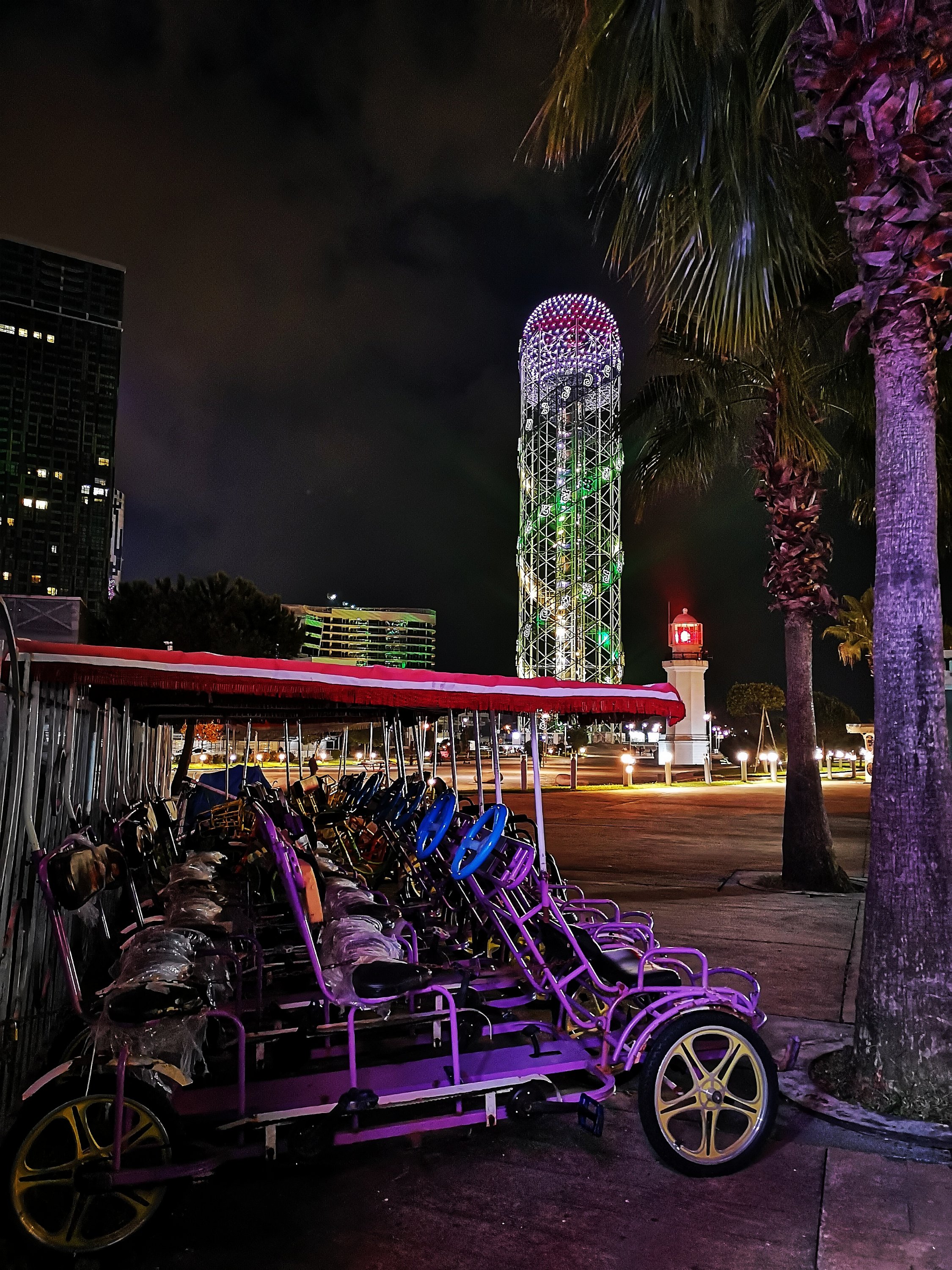Już dawno po sezonie i morze nie było tak intensywnie eksploatowane ale było za to cicho i spokojnie a tego właśnie potrzebowałam. Spaceru po nocnym, iskrzącym się światłami Batumi.