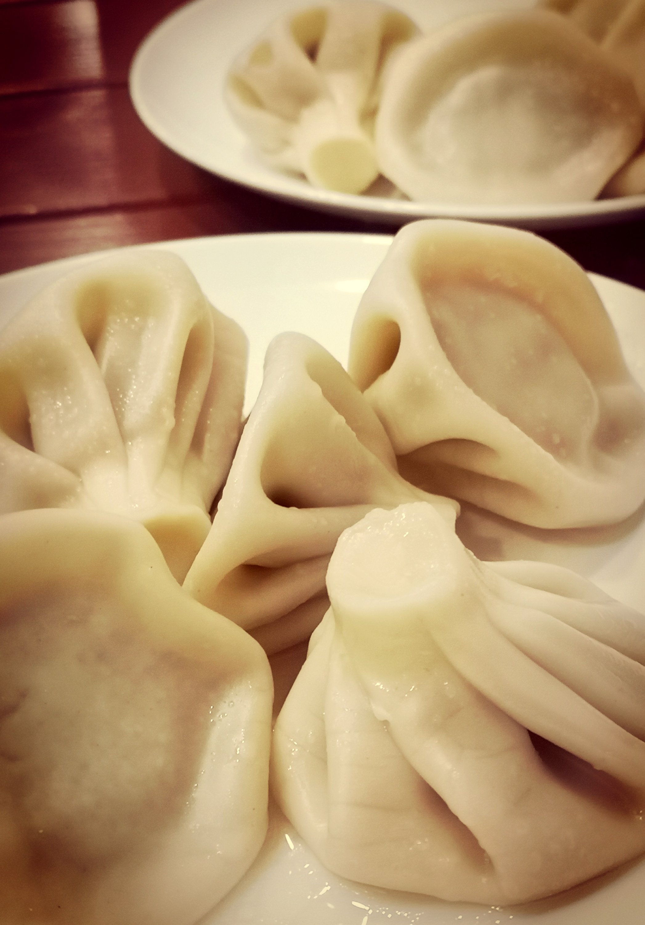 Kuchnia może smaczna ale „nie moja” Raczej smażonego ciasta fanką nie jestem, więc sporo rzeczy pominęłam. Za to chinkali jest wyśmienite. Cena 1 LAR za sztukę- choć na reklamie cena przy pełnym talerzyku. Zamawia się tyle, na ile ma się ochotę. Chinkali to prosty przepis. Ciasto jak na pierogi i farsz z wołowiny lub baraniny ze startą na tarce cebulą i kolendrą. Do mięsa podczas wyrabiania dodawana jest woda lub bulion. Kółka większe niż na pierogi- ok. 10-12 cm z łyżką farszu skleja się w sakiewkęi mocno ściska miejsce łączenia. Gotuje się ok 10- 12 minut. Podaje od razu. W środku chinkalli jest i mięso i bulion- można się oparzyć. Najprościej można je zjeść rękoma. Delikatnie ugryźć i wypić bulion ze środka, zjeść resztę.